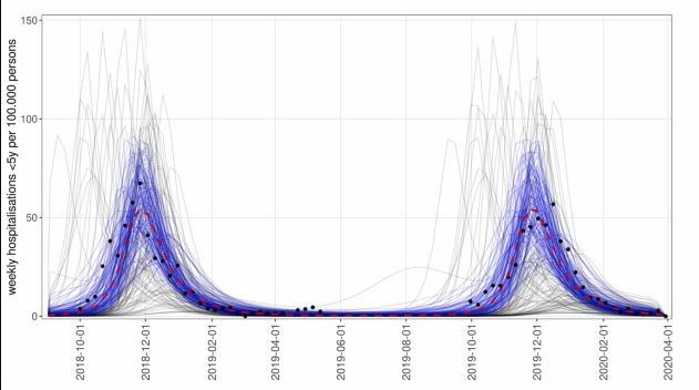 Fig 1. Simulated hospitalisations for children under 5 years before the COVID-19 pandemic. Source: Koltai, M. K.-S. (2022). Determinants of RSV epidemiology following suppression through pandemic contact restrictions. Epidemics, 40.
