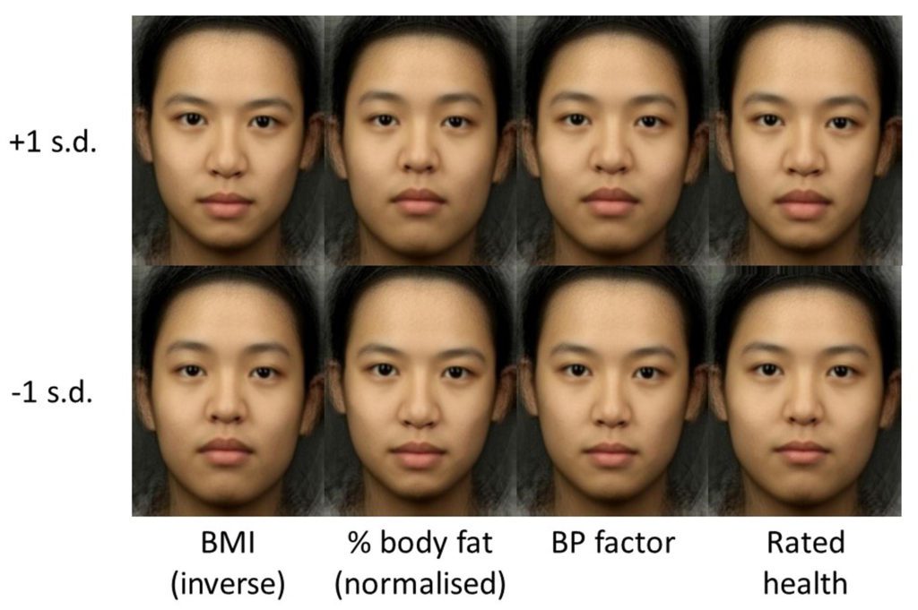 Source: Stephen, I. D., Hiew, V., Coetzee, V., Tiddeman, B. P., & Perrett, D. I. (2017). Facial Shape Analysis Identifies Valid Cues to Aspects of Physiological Health in Caucasian, Asian, and African Populations. Frontiers in psychology, 8, 1883. https://doi.org/10.3389/fpsyg.2017.01883